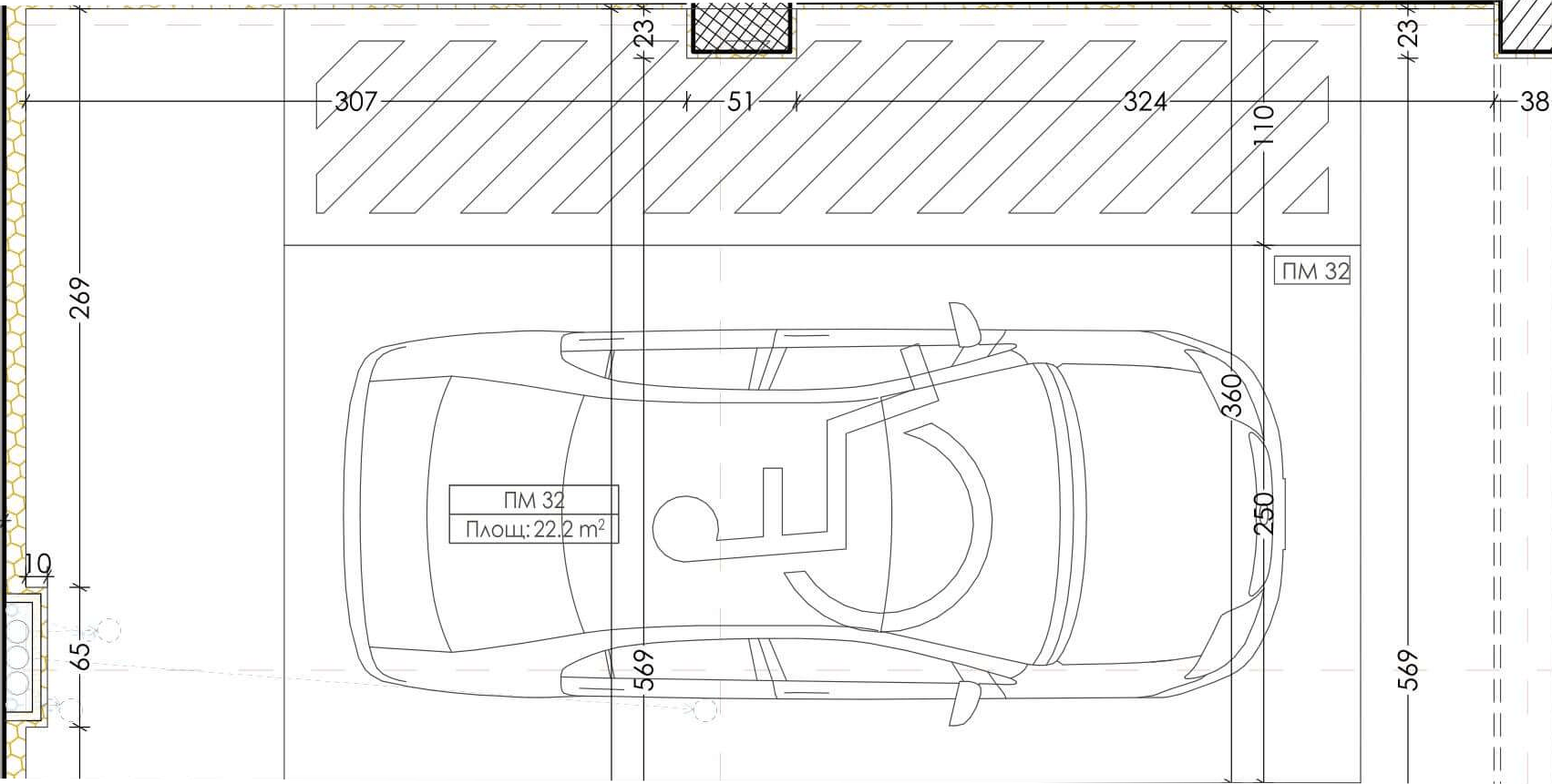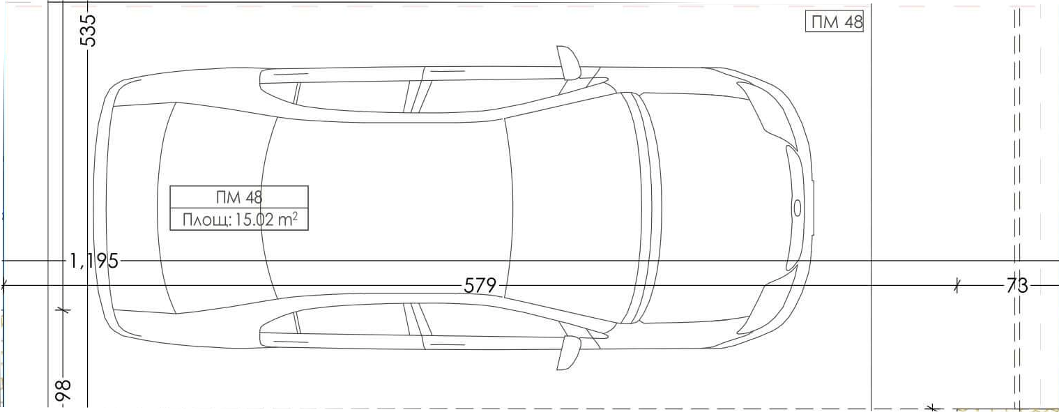 Закрито паркомясто с обща площ 16,05 кв.м, което включва 14,04 кв. м чиста площ и 2,01 кв.м общи части.